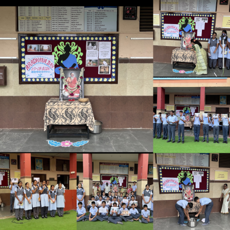 On 3rd of August, Aradhana Day was observed in our School.The programme started with prayer in the assembly. Flowers were offered by our Principal Ma’am-Bhuvaneshwari N to Gurudev. Gurubhajans were rendered by the students of std VIII. A tribute to our Pujya Gurudev Swami Chinmayanandji was offered by the students through a speech. Students of std VIII & IX presented a review of Gurudev’s Life-his profession & Spiritual journey and Samadhi on this auspicious day the importance of “Seva “ was explained by the students .”EK MUTTHI CHAWAL” was offered by the students .The programme was concluded with Shanthi Mantra.